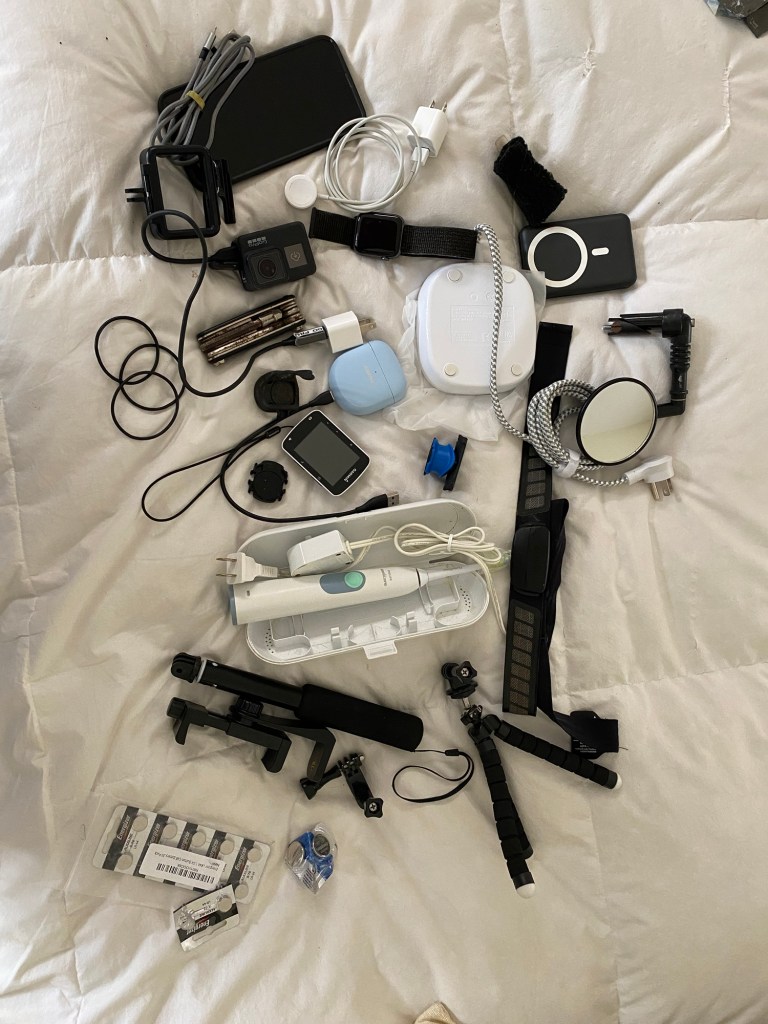 - Anything electronic – all chargers and their connecting cables, go pro and accessories, phone, toothbrush, ear buds, extension outlet, power brick, batteries…is everything powered?