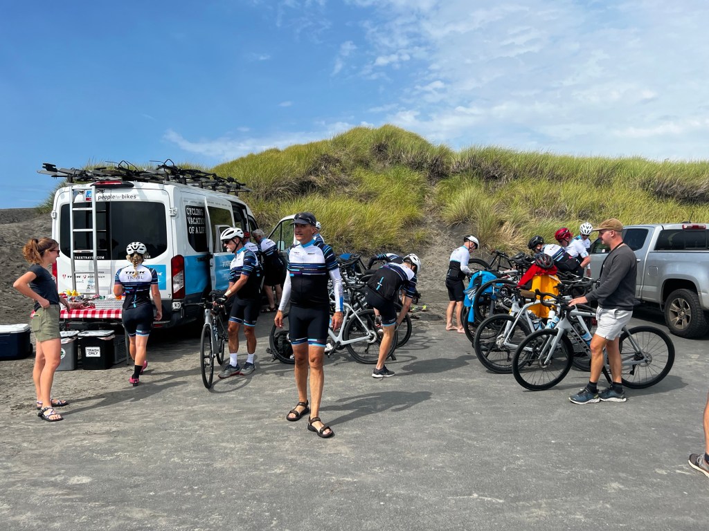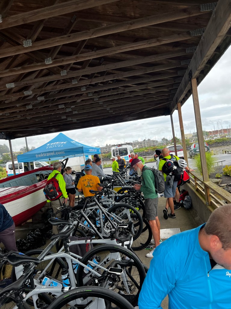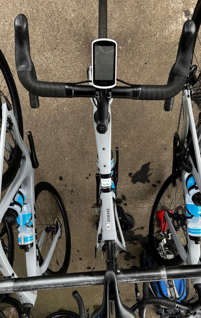 Today was a shakeout ride for all of us who are using Trek supplied bikes. Very nice – Domane SL7, Gen 4, probs about $8k retail. Rides like a dream and quick, plus latest tech!!! All ready thinking a new bike in my future.