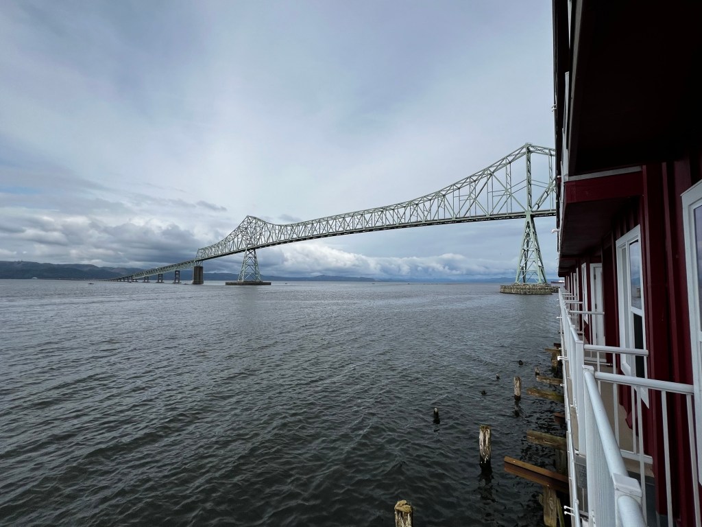 The ride was an out to the Pacific Ocean and back from hotel (The Cannery Pier Hotel, which is absolutely gorgeous rooms on the Columbia River). The beach was wonderful at Fort Stevens State Park. By the time we arrived nice sunny day, for the beach.