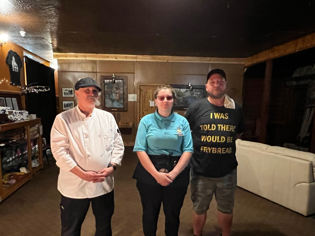 I’m better now after a 7 mile decent that required no pedaling. The hotel then had a spread of prime rib, baked spuds, salad and desert. Super nice people – all grew up here!!! They also gave us bling bags – very nice!!!