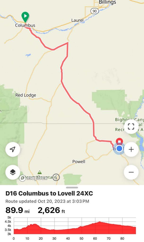 First the country side is bleak – gray and amber. Plus it doesn’t change for 70 miles! Second, the wind…in your face all day!!! You pedal harder and go nowhere faster – it’s demoralizing!!! Third, my gravel off course from day before took more out of me than I thought – didn’t have the gas today to push thru the wind. Lastly, the anxiety of what tomorrow brings with 7700 feet of climbing for 20 miles – yep it’s a monster 👿