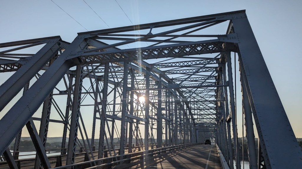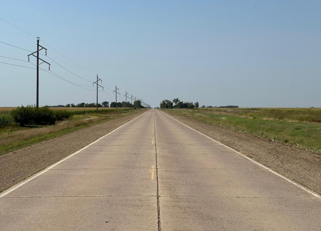 Today we started by crossing the Missouri River – boundary of west and east. Also supposed to be some cultural boundary too! To me it looked like big farms of corn, sunflowers and sorghum (which looks like corn with no husks).