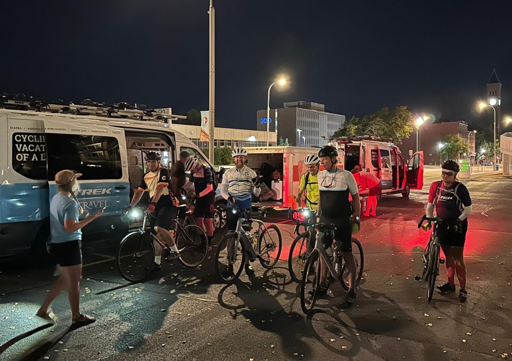 Today was the planned highest mileage day for the trip. As such starting times for the ride was before sun up. Riding with lights thru a park, making 90 degree turns, then hitting the road with everyone going to work – kinda bananas!