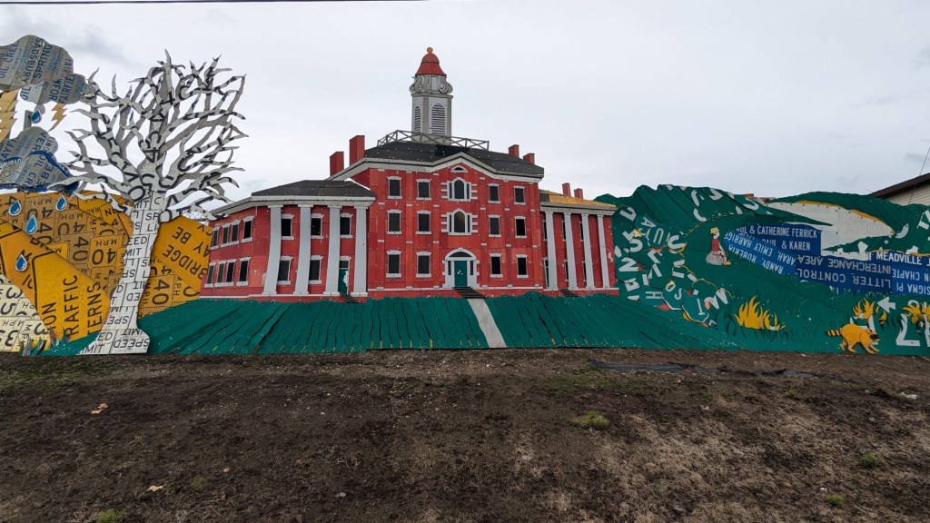 Today started wet and stayed that way! It is interesting about the east coast is the sameness – big, leafy trees covering hills in all directions. There is no compelling landmark to orient you, like a Mt. Rainer or the Olympics or Cascade mountains. I wouldn’t say it’s blah but it doesn’t have the pop.