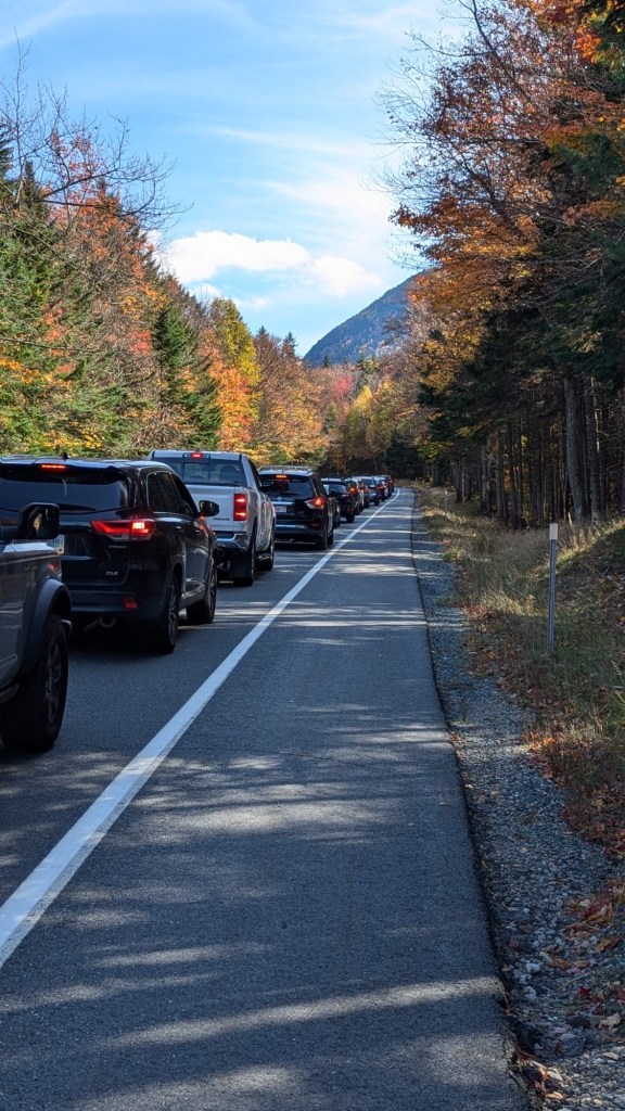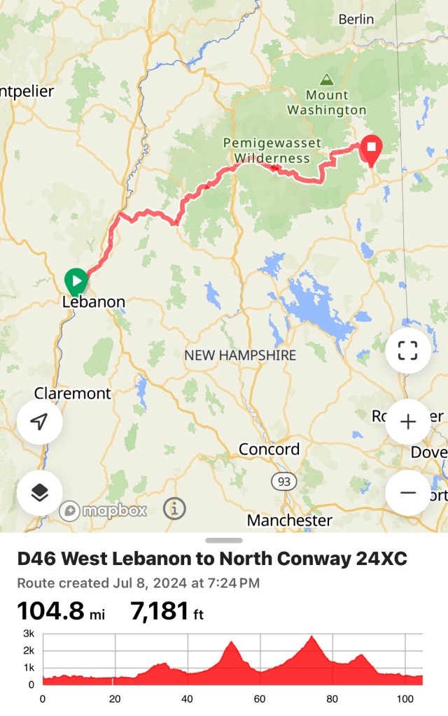 Today’s ride lived up to its billing – long time in the saddle, multiple big climbs! What wasn’t advertised was the volume of traffic – oh my god! Two distinct areas a grid lock – in the town of Lincoln, riding thru parking lots and on sidewalks to get thru. The second was on the big climb where the top was a viewing that was completely full. For this climb people were half on the shoulder, so bikes were stuck. I said screw it and ride up the center on the double yellow line. I know sounds unsafe but it was safer than the shoulder. On coming traffic, had space to move over, so lots of space for bikes. It was Mike and I who did this – we got a bunch of yells from drivers in both directions, mostly saying in a flavorful way we were crazy!