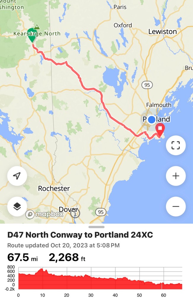 The ride itself was thru the country side of Maine. Lots of trees and farms. It was rolly but the important thing was each roll you could get to the top without an all out effort. Wish that would have been the case everywhere!
