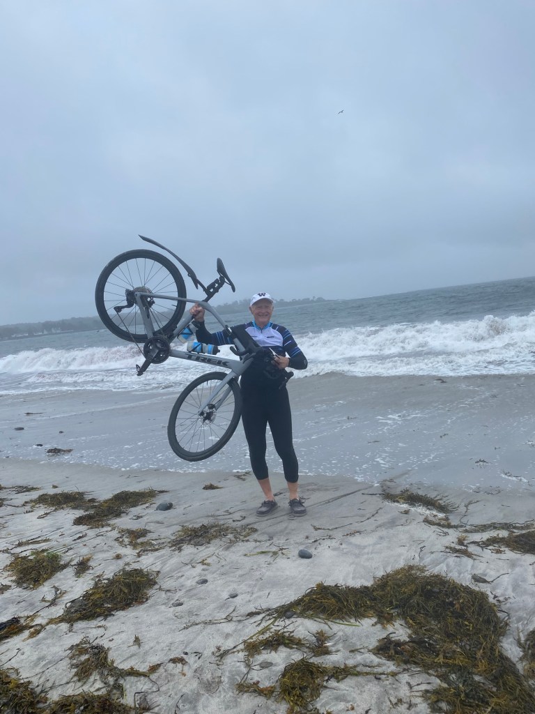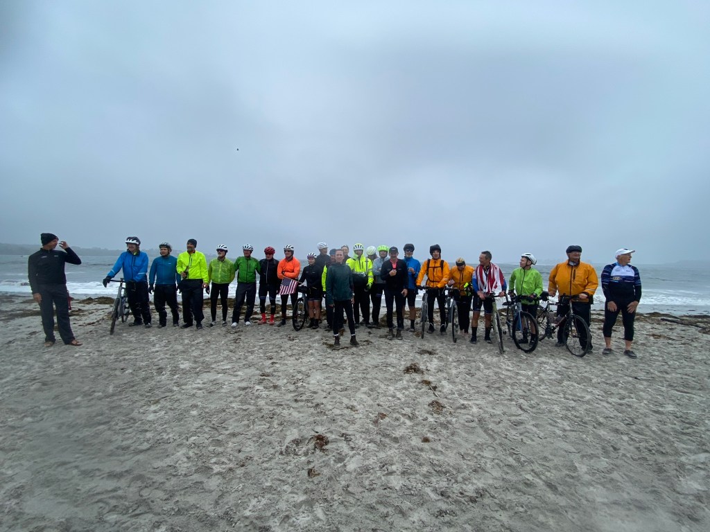 We got to the beach to a great family welcome with screams, signs and cow bells. It was surreal as to why all the people and why the cheers, it was just another ride! But of course it wasn’t – it was a scramble to get to the beach, get in proper gear for pics and the the pics. The folks who came were so excited and they were freezing as the wind was howling with coming down sideways. What a way to end!